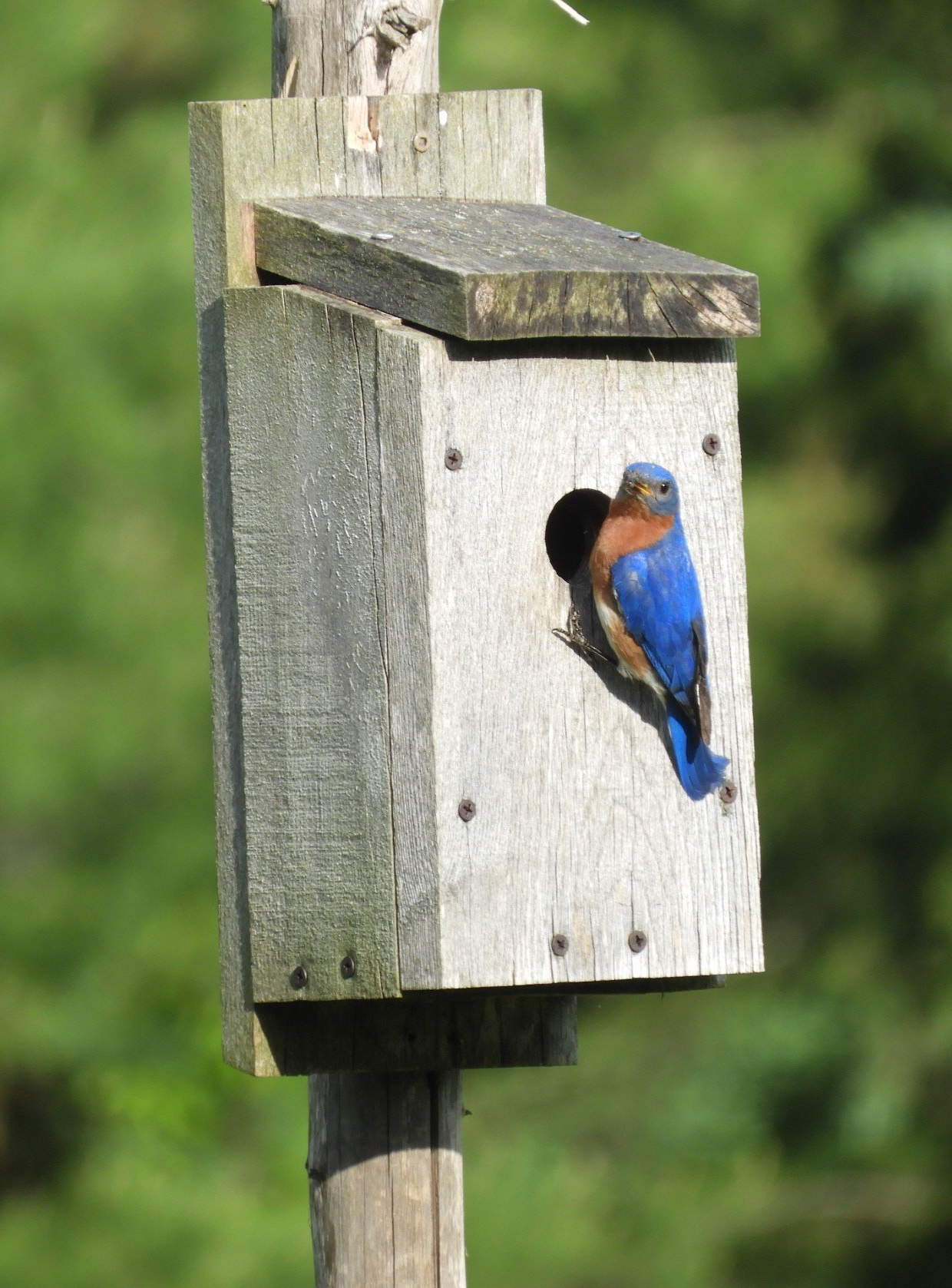 A week ago we were sitting on the deck of our other boat, Meadowlark, on our farm north of Durham, sipping coffee and watching a pair of bluebirds tending their young. They take turns bringing tasty (I can only assume) bugs and juicy-looking caterpillars to the nesting box. Bluebird TV. We could watch it all day. Shorts. We were wearing shorts. I’m sure of it.