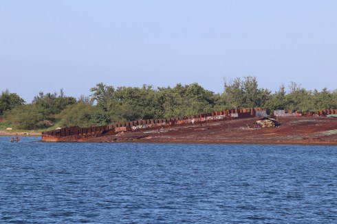 “This place looks like a ship graveyard,” I say to Chris, as we pass more rusted boats, long stripped clean of anything of value and slowly being claimed by the sea. They’re beautiful in the late afternoon sun, in a sad kind of way. We come as close as we dare to a ship that looks like it could still be floating. I try not to think of what its last journey might have been like. Most probably it was towed here, but maybe it came in under its own steam.