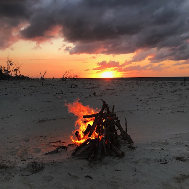 In addition to an abundance of fresh provisions, we are welcome to relax in the cool lobby of the resort, use their wifi, dash back an espresso or sip a cold beer—or both. There are miles of beaches to walk, and a beautiful spot for an evening campfire while we watch the sun set.