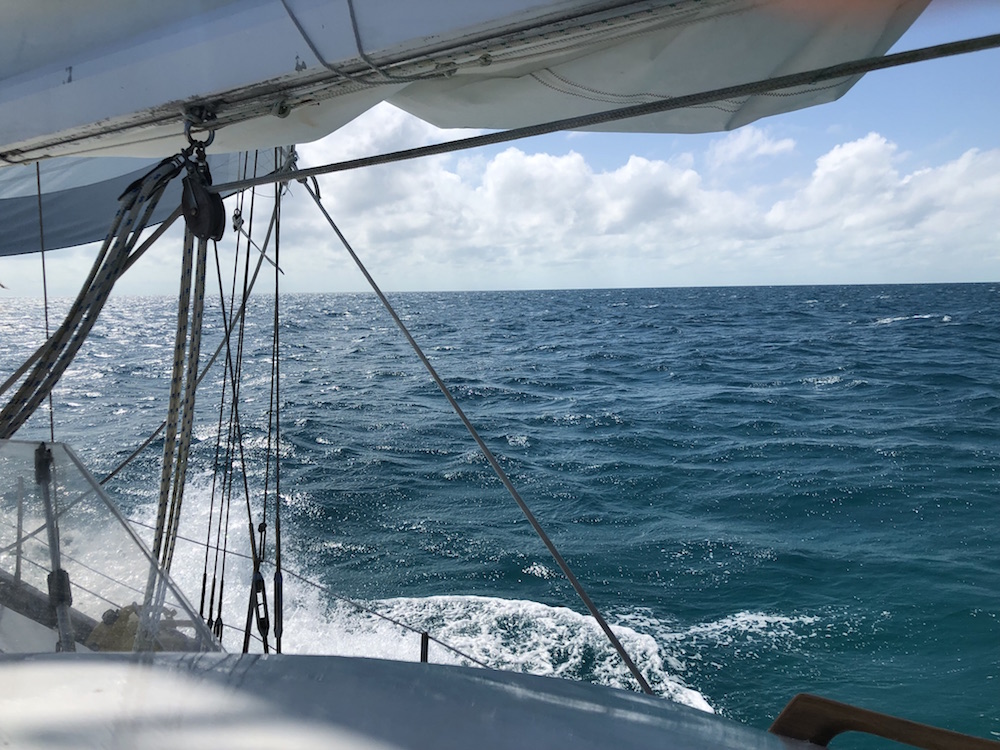 For the first time in as long as we could remember, the winds were in our favour when we set out from Key West—gentle south winds for our sail east along the Keys, a gentle west wind for our sail north. We sailed on the Gulf side of the Keys as far as we could, over calm blue waters, then punched out into the ocean at Marathon and began the big push. We would sail day and night until we got to Titusville.