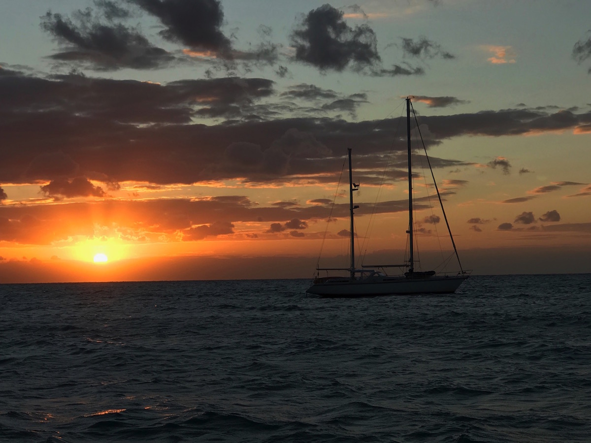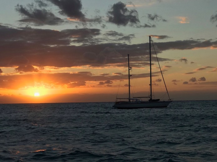 The winds will be back tonight. And the night after. And every night in the foreseeable future. But we don’t care now. We’ve given up on the idea of moving east and are heading to the Cayman Islands in the morning. They are due south of us, so we’ll have the wind on the beam—and the waves too, unfortunately. It’s going to be a rolly ride.