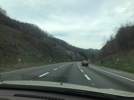 We had planned to drive all night, sleep beside the road if we got too tired, but then, as we were driving through the mountains of some state—they all run together in my mind—stormclouds began to form in the distance, then quickly grew into a frightening thunderstorm, bolts of lightning streaking straight down, heavy rain. This was too much. We made the difficult decision to stop at a hotel, and it’s a good thing we did. Next up—flash flood warnings. It’s hard to take action to get out of the way of a flash flood when you have no idea where the creeks and rivers are.