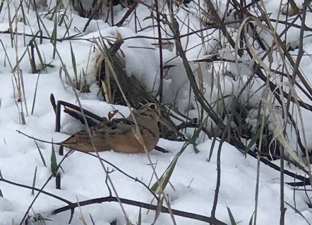 I don’t know what to do about the woodcock. Where is he this morning? He’ll be cold and weak and probably very hungry. A woodcock will eat its weight in earthworms in a day. If he can find them. Maybe he’ll eat birdseed in a pinch.